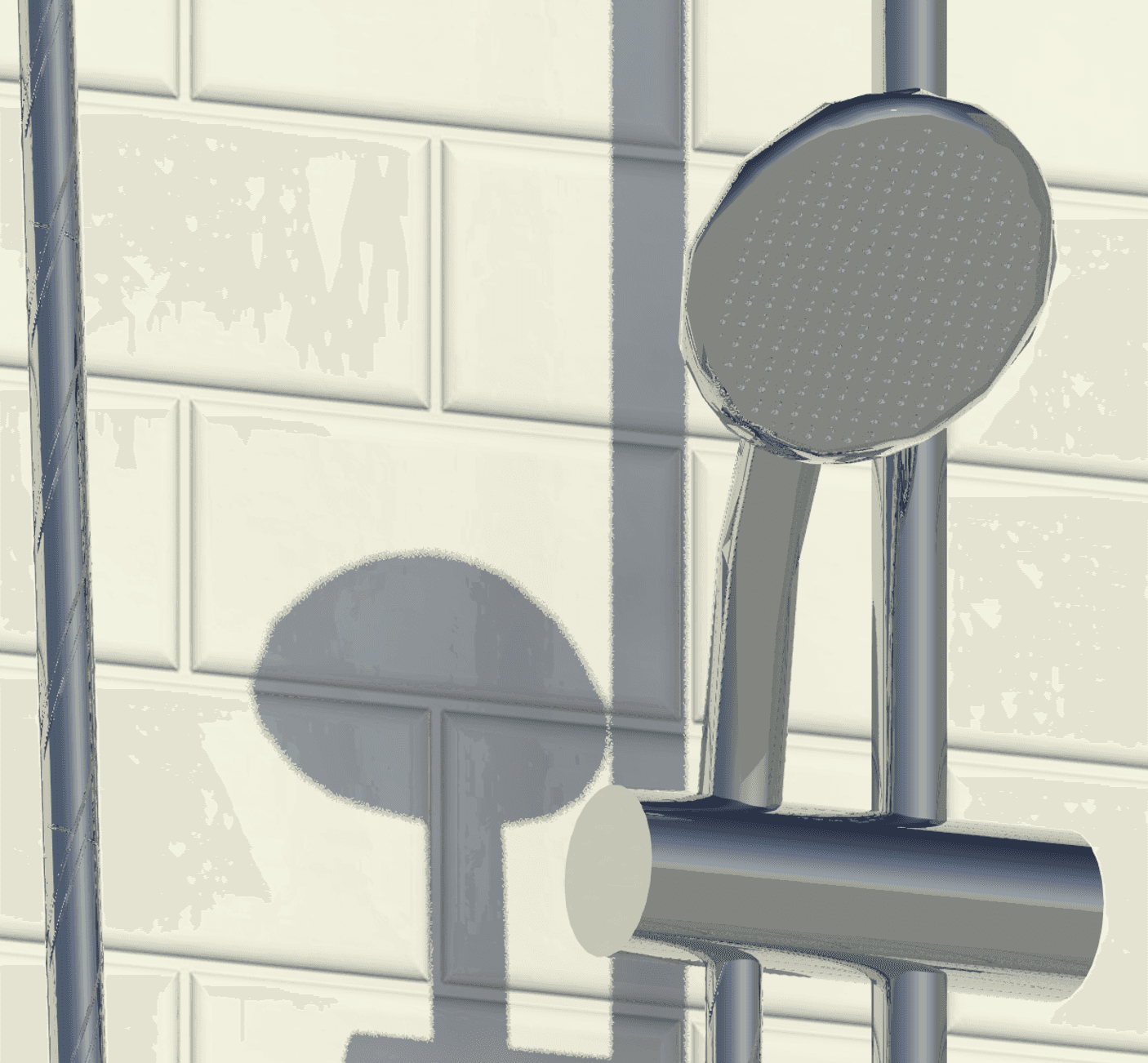 Revit raytrace showing material details on shower kit.