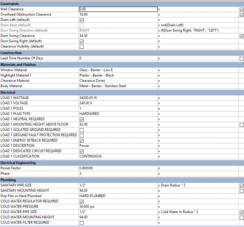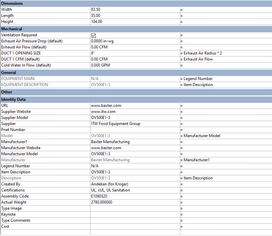 All of these Revit families were created to specific Kroger BIM standards, to be used solely by them and not for public distribution by the manufacturer. Without going into too much detail, these standards have an overall focus towards the use of shared parameters (for proper scheduling in their Revit projects) and a realism in 3D views.