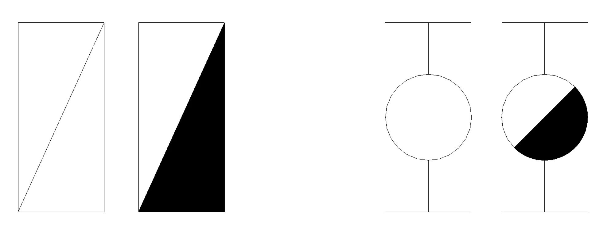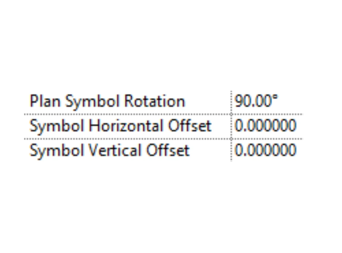 Left to Right – plan symbol at 90 degrees, project symbol properties and plan symbol at 45 degrees.