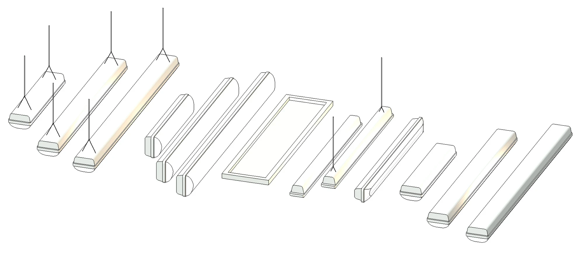 Following up from last week's imperial lighting release, our latest collection of Revit content is a set of metric manufacturer-specific families for commercial and industrial indoor lighting systems. These include a selection of office lighting such as downlights, linear lights and also some linear battens for industrial lighting. With a variety of mounting methods such as ceiling recessed, surface mounted and suspended, this small collection can be used for front and back of house.