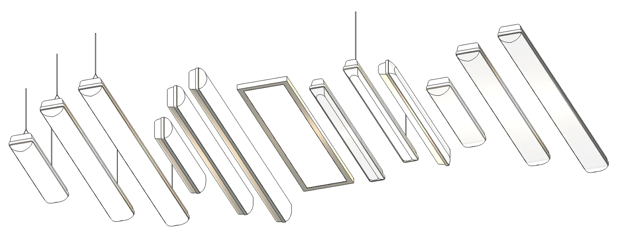 These luminaires all have the appropriate connectors to be added to power and control systems. In the near future, we will release a Lighting Controls collection, which will interact with these Revit lighting fixture families to create precise control circuits and comprehensive deliverables.