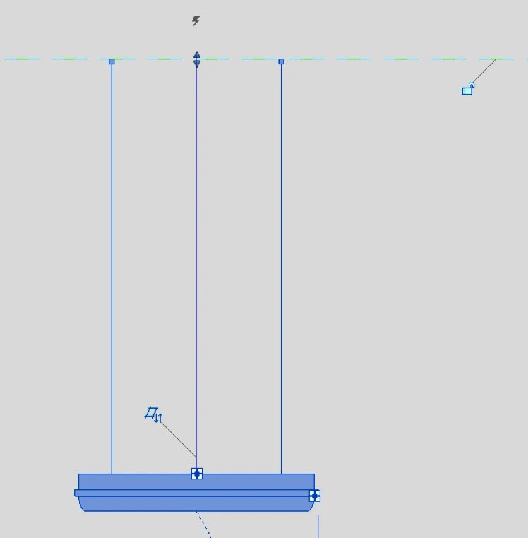 The Suspended models work differently. They are intended for use in areas where there is no ceiling, back of house areas such as corridors and plant rooms. They are still face based, and can be placed on a reference plane or pseudo ceiling. The "suspended height" instance parameter in this occasion shifts the chain installation point upwards to the slab or framework. We also utilise Revit shape handles — also know as 'grippies' — on these suspended models so the user can grab the end of the chain or pendant and shift it up to the desired location, and even lock the alignment if needed.
