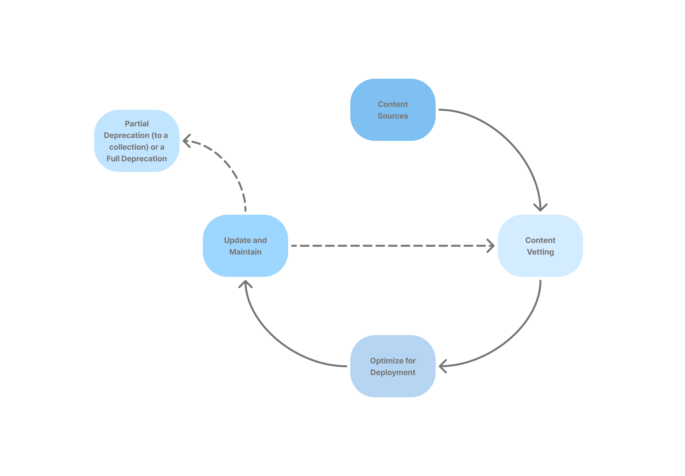 The “perfect library” is a myth, and chasing it can hurt more than help. Instead, we always advocate for starting with whatever content you have today, keeping your lifecycle process as simple as possible, and only adding complexity as needs require and resources allow.