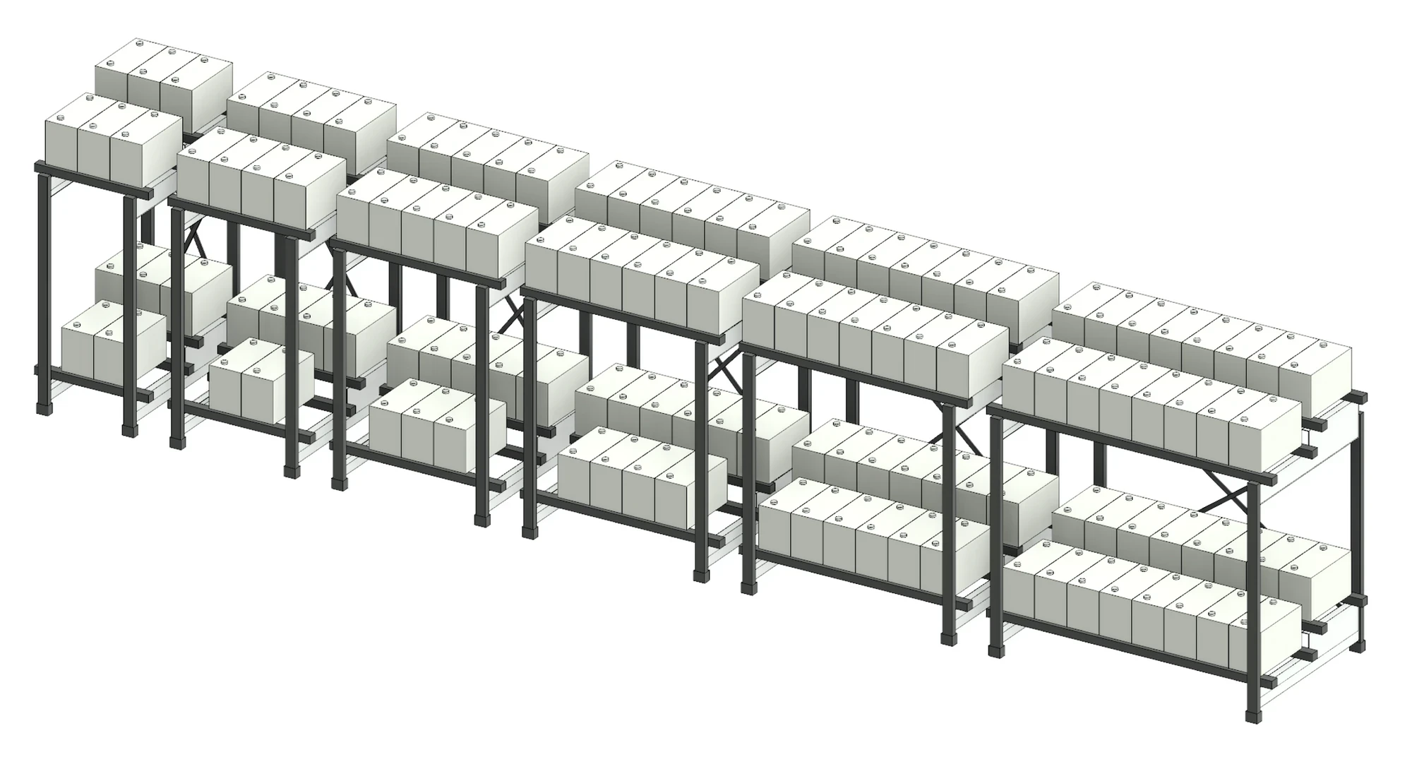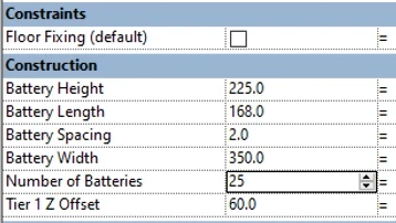 We've done all the hard work to create a user-friendly Revit family that you can quickly change as needed to suit different battery sizes. There is a shortage of manufacturer Revit content for components such as this rack, and now this one model could be used as the basis for other manufacturer families.