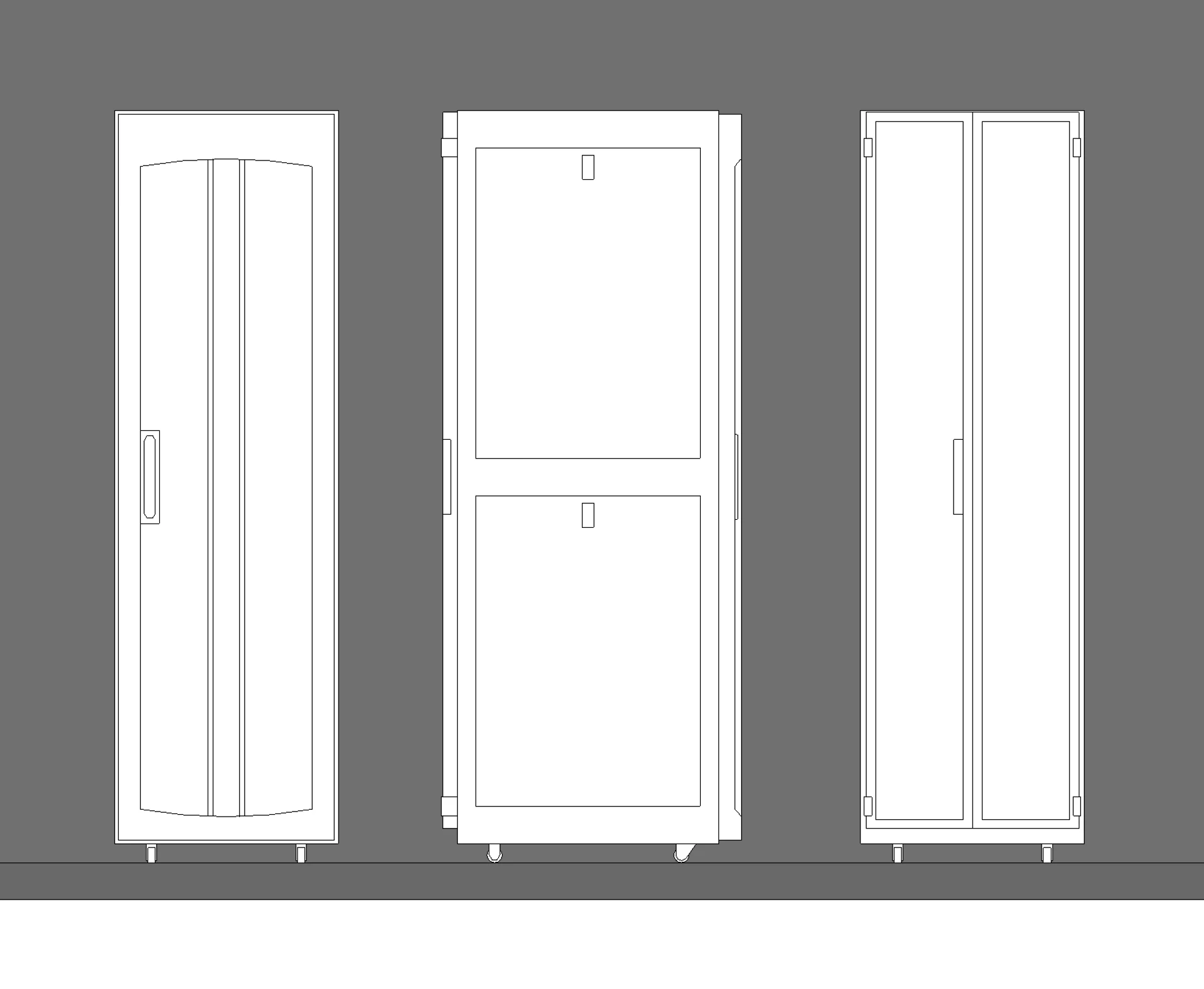 Left to right: Revit elevations showing the cold aisle containment family in coarse, medium and fine LOD.