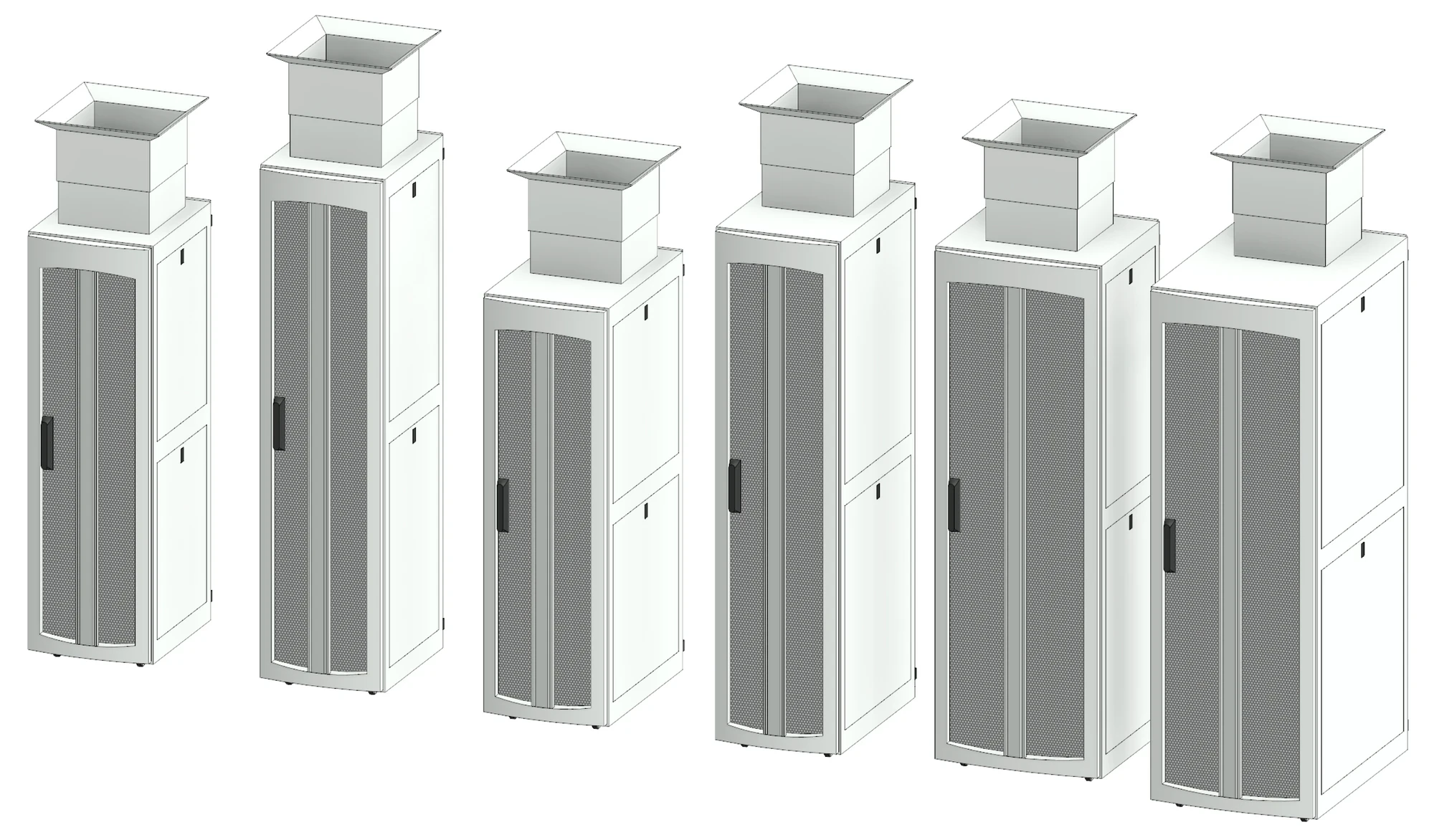 The collection's cold aisle containment Revit family also comes from Chatsworth and uses their Gen 3 cabinet as standard. The family contains 36 types and is fully adaptive to create any number of servers according to your desired length, width and height.