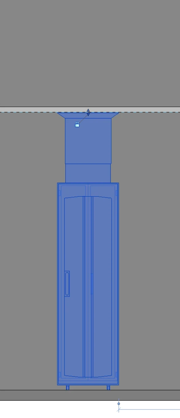 The cabinet server with top exhaust also has a feature which enables the exhaust duct makeup to be dragged or aligned to the underside of the ceiling and locked. As shown in the images below, this means that the Revit family will automatically adapt to any change in ceiling height.