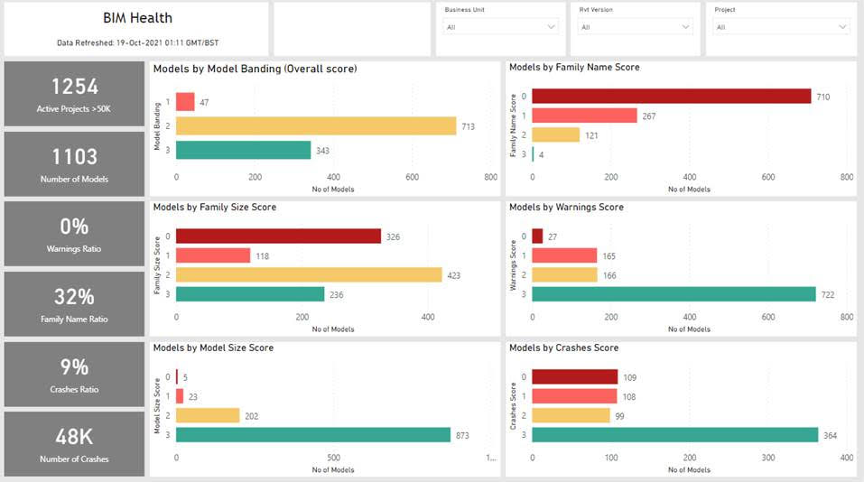 BIM Health dashboard with custom scoring built using Kinship data in Power BI.