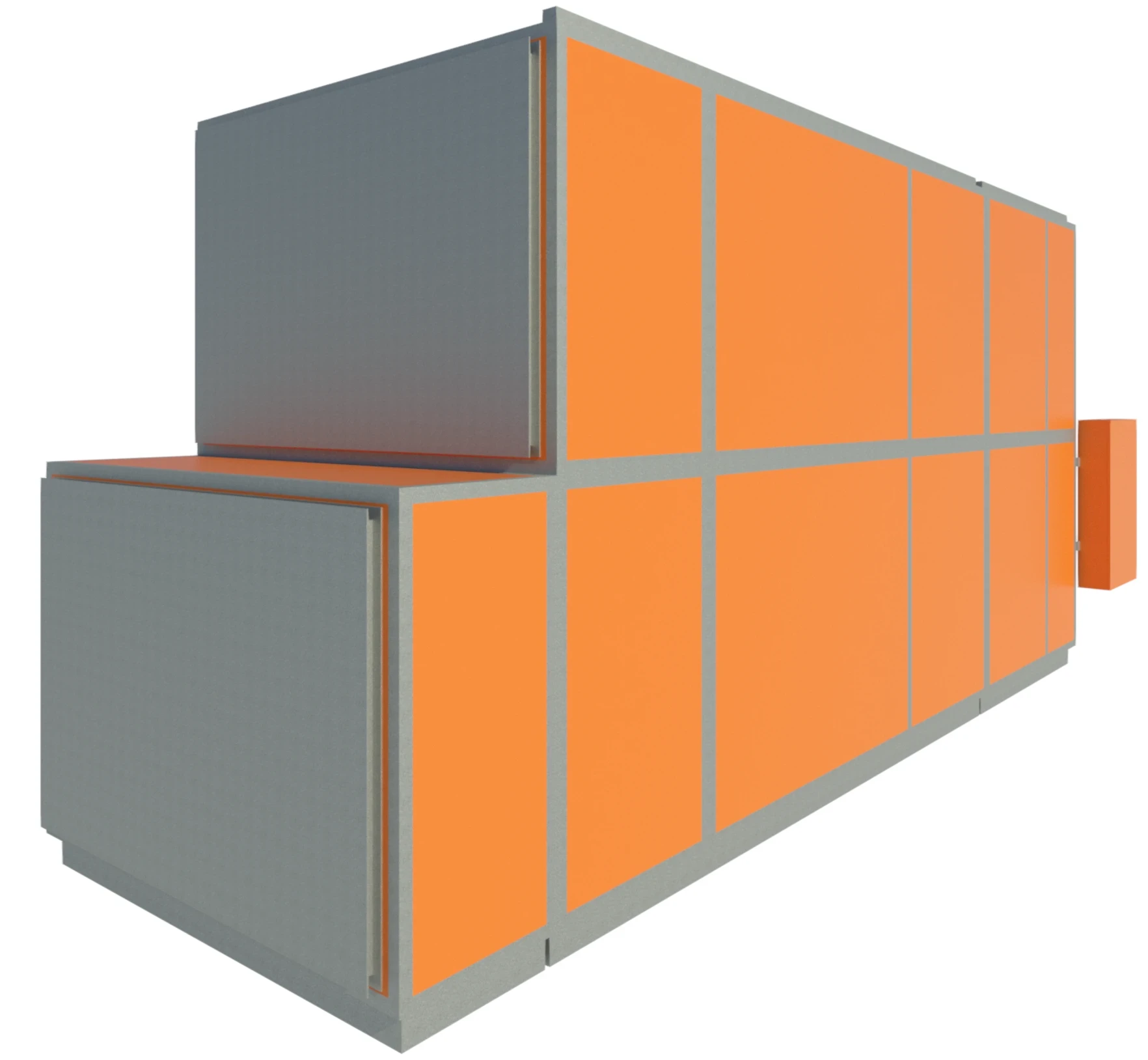 Modular air handling units are perfect for using a nested Revit element. We started by creating a single sophisticated and flexible module that can change into any AHU component type, such as coil, filter, heat exchanger or even fan with duct connection.