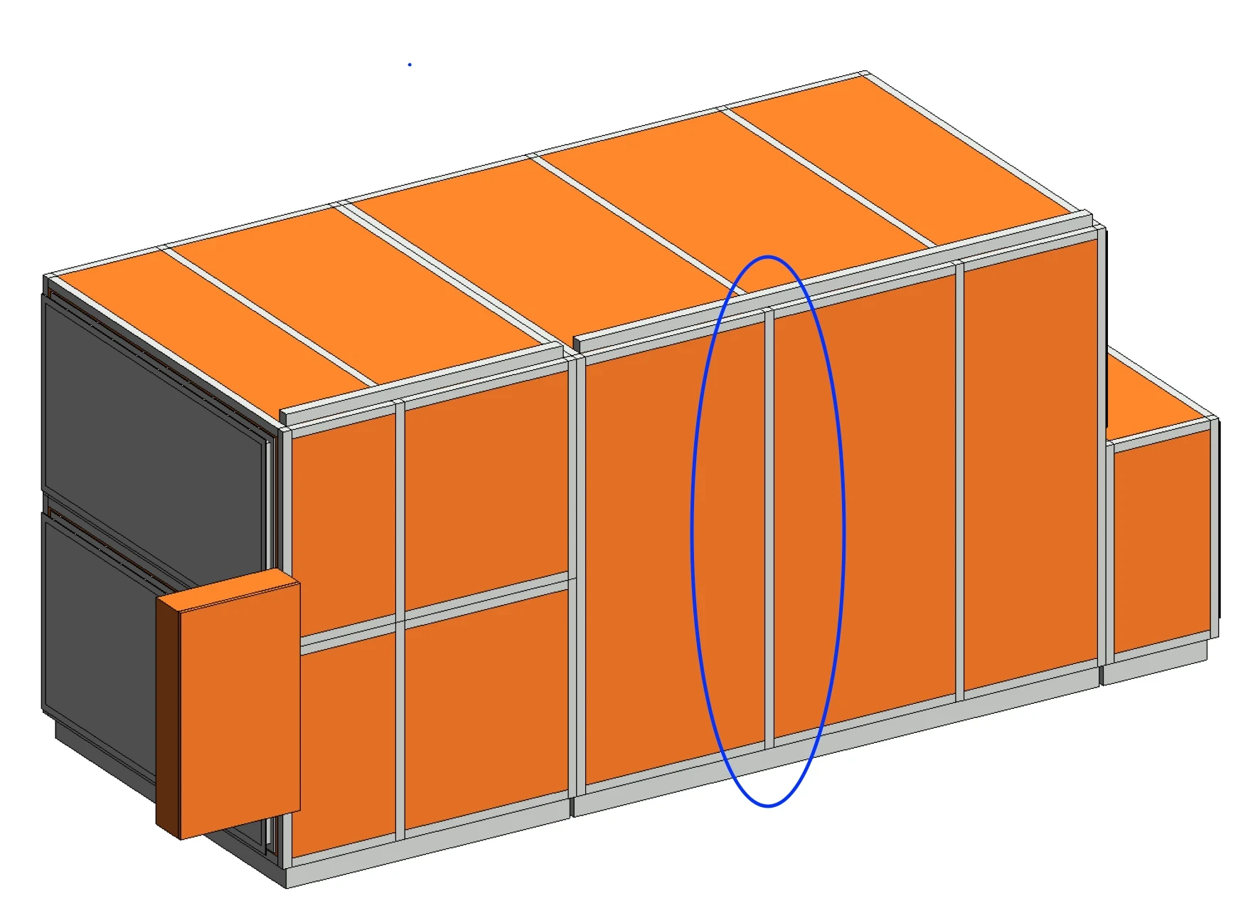 Nested module frame options and a complete AHU family showing modules with shared frames.