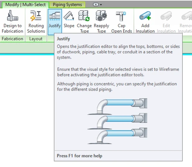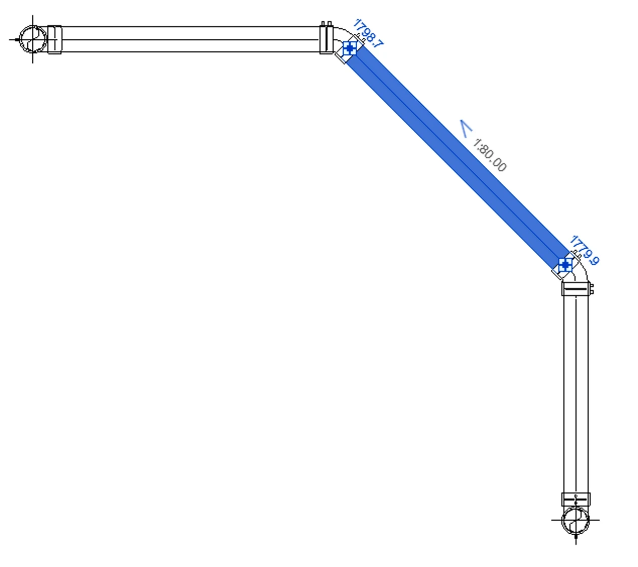 The reducer fitting is a true Revit reducer, unlike some of the reducers you may find nowadays from the Revit OOTB library. This reducer will work with both JUSTIFY and SLOPE tool in Revit, switching seamlessly between the two.