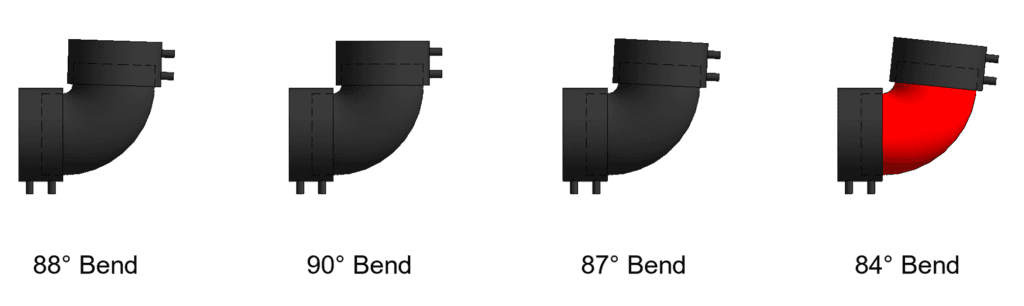 This pipe range has been given a 2 degree tolerance. For example, the 88 deg bend can produce an 86 - 90 degree bend and still return the correct Polypipe product code.