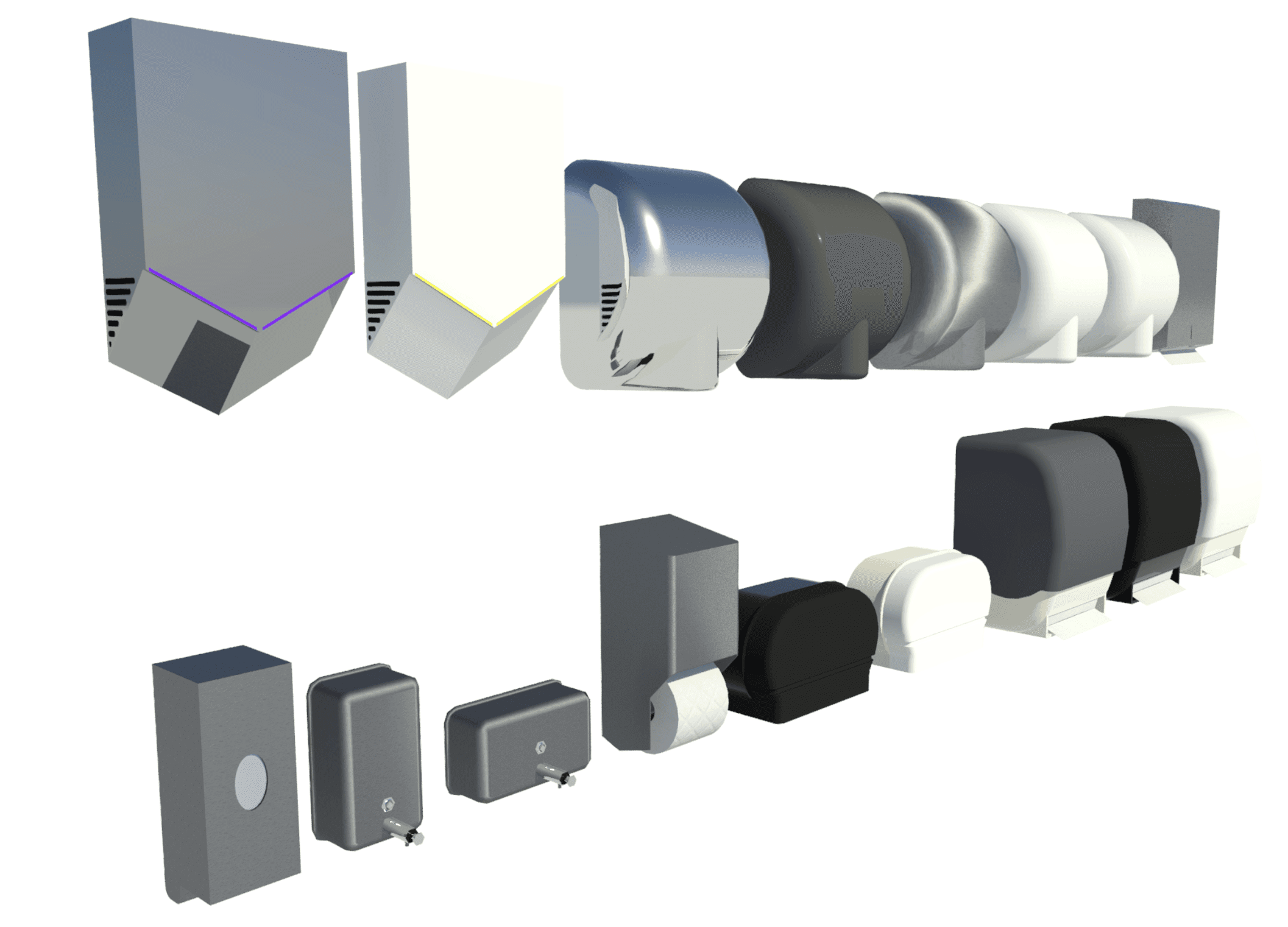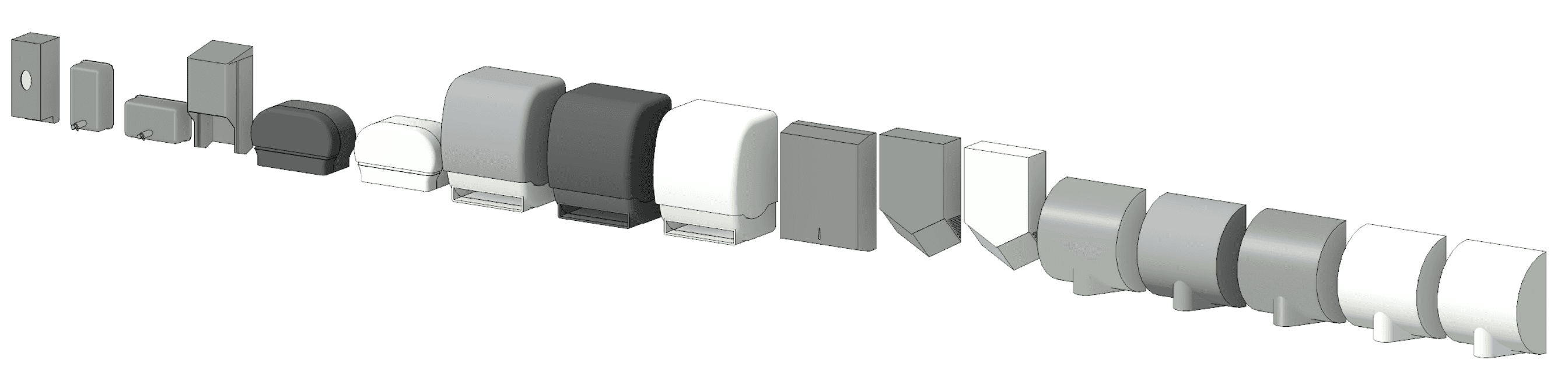 Focusing on imperial bathroom accessories, this free collection of Revit content offers a range of hand dryers and manual and automatic dispensers.