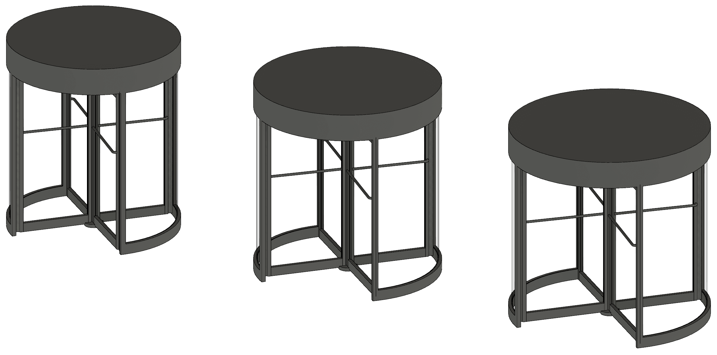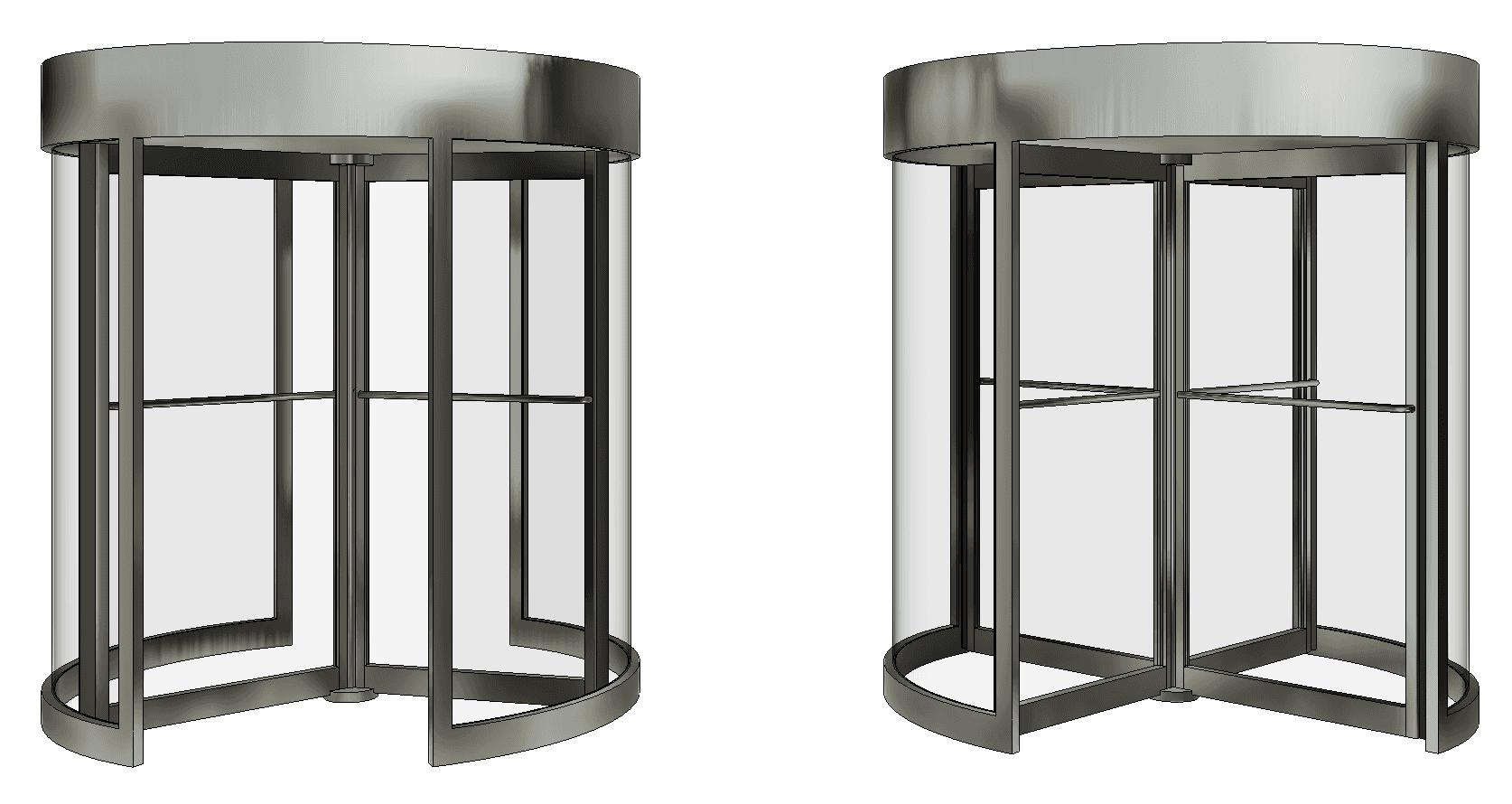 I tend to think that the majority of revolving doors that end up in buildings are used in glass facades. Even some that are utilized in solid walls still have a small curtain wall framing around them. So it made sense to us to create our revolving door families as Curtain Wall Doors. Does it make sense to you or would you have taken a different approach? Shoot us an email at support@kinship.io and let us know your thoughts!