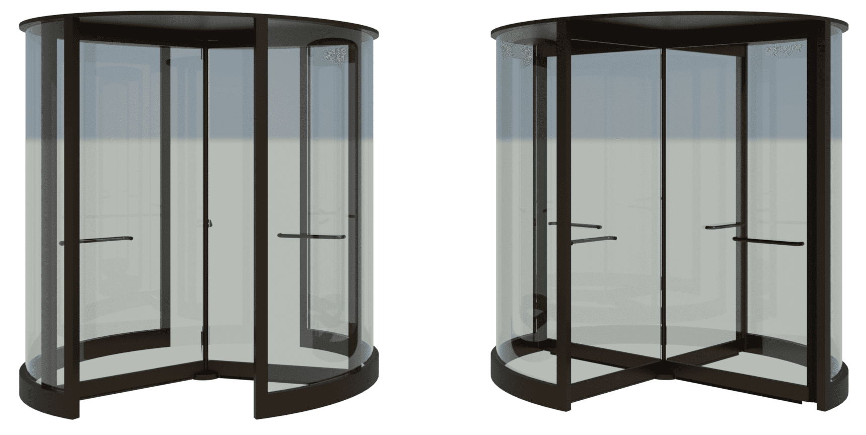 Revolving doors are not your regular old doors — they come in all shapes and sizes and can either be automatic or manually operated. They can have a different number of wings depending on the size and how many people need to shuffle through them. Common applications will include commercial and industrial buildings.