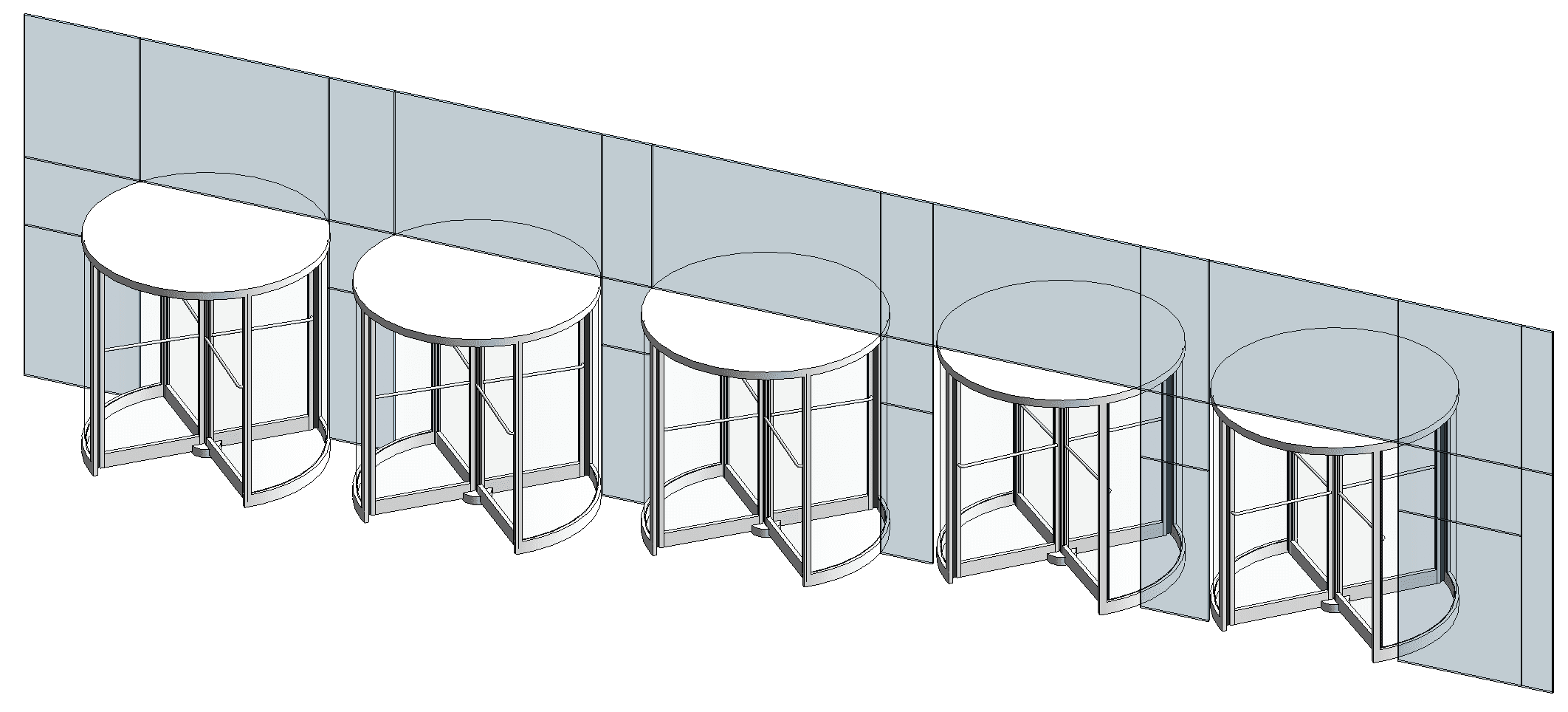 We always try to improve on whatever Revit content is already out there, even our own previous work. When we first looked into revolving doors, we saw some families by others that had been created as standard Revit Doors. Consequently, this means they can only be dropped into a wall, NOT a curtain wall. Some were even created as Generic Models…