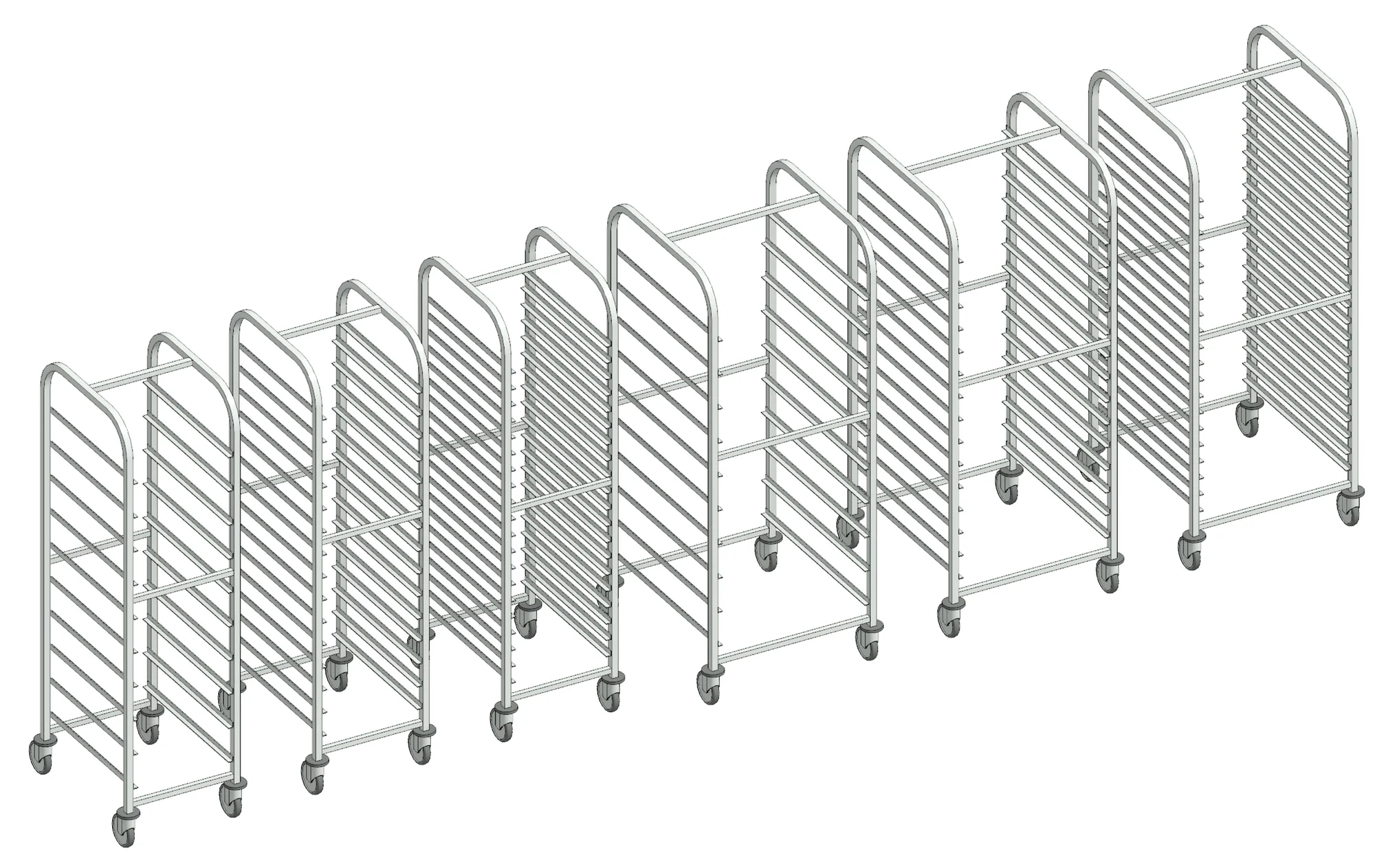 Lastly, the collection contains a tray storage rack from Merlin Industrial Products and wall mounted clock from Acctim.