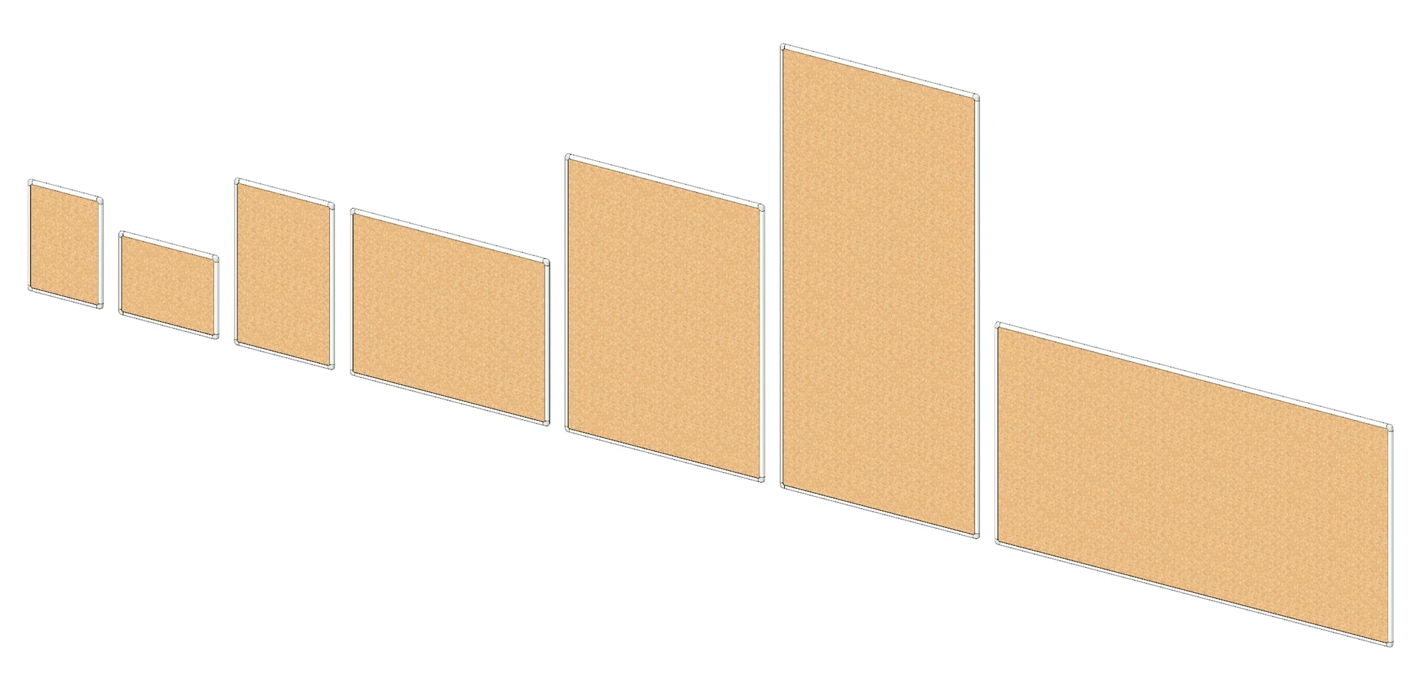 The collection contains a wall mounted noticeboard and whiteboard from manufacturer Bi-Office and a smart board from Smart Technologies. All of these "board" Revit families contain a variety of sizes. The whiteboards also have a selection of finishes to choose from including ceramic, lacquered and non-magnetic.