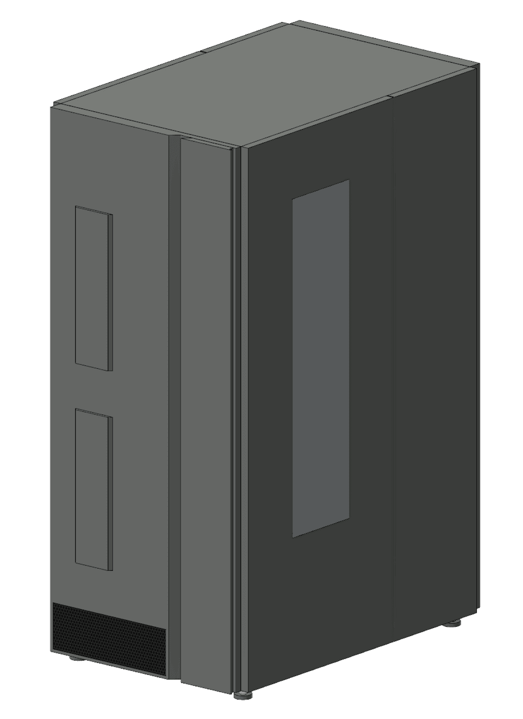Creating stand-alone versions of these families required a different approach from the one we usually take with manufacturer content. When creating manufacturer content we always build a flexible infrastructure so the end user has some control. But, in these cases, we already knew that we only needed one type. We created the supercomputer’s aesthetic by using a custom image. We took this approach due to the complex pattern seen throughout its surface. The door hinges were then modelled to create more depth and because these elements exist outside of the front panel dimensions.
