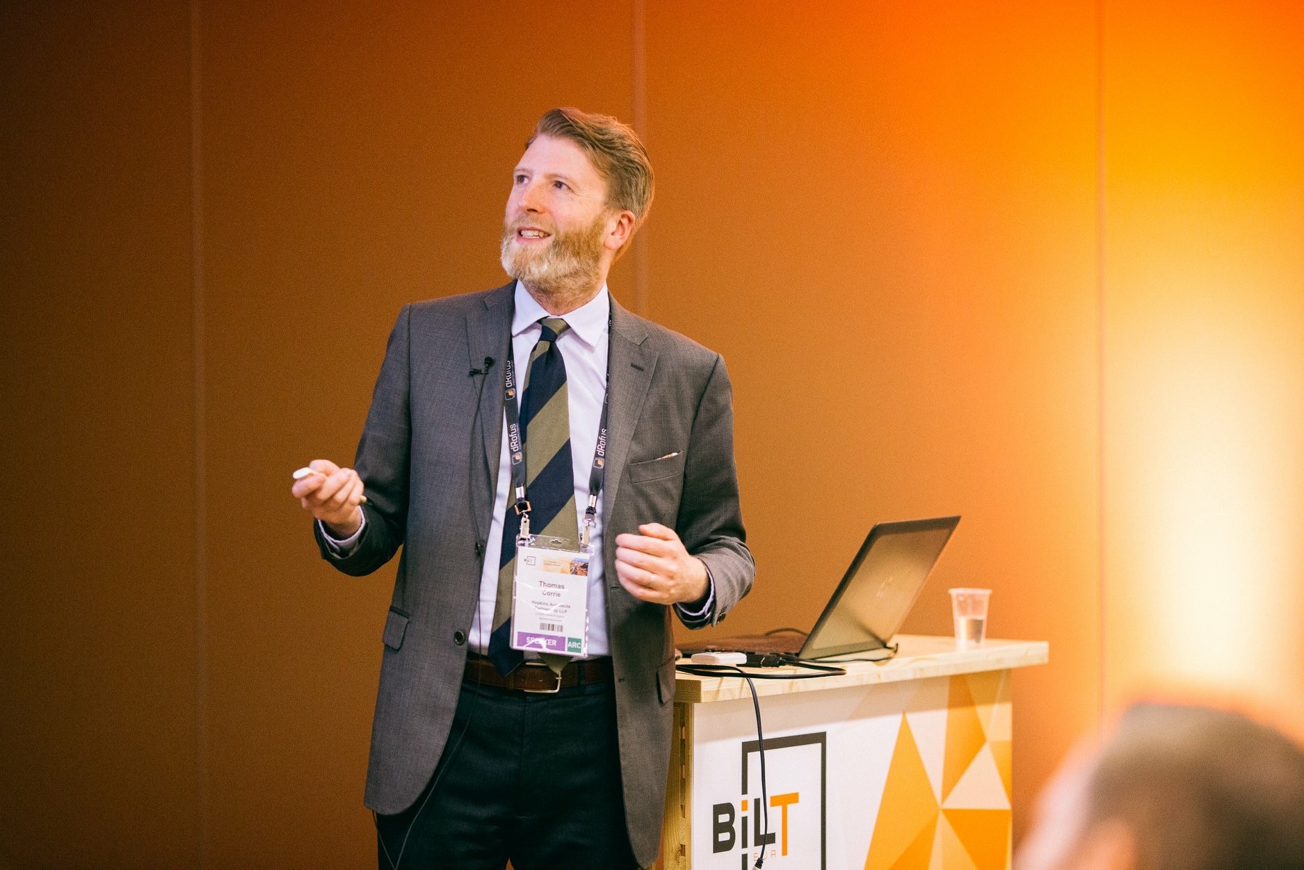 Thomas Corrie presenting at BILT Europe 2018 in Ljubljana.
