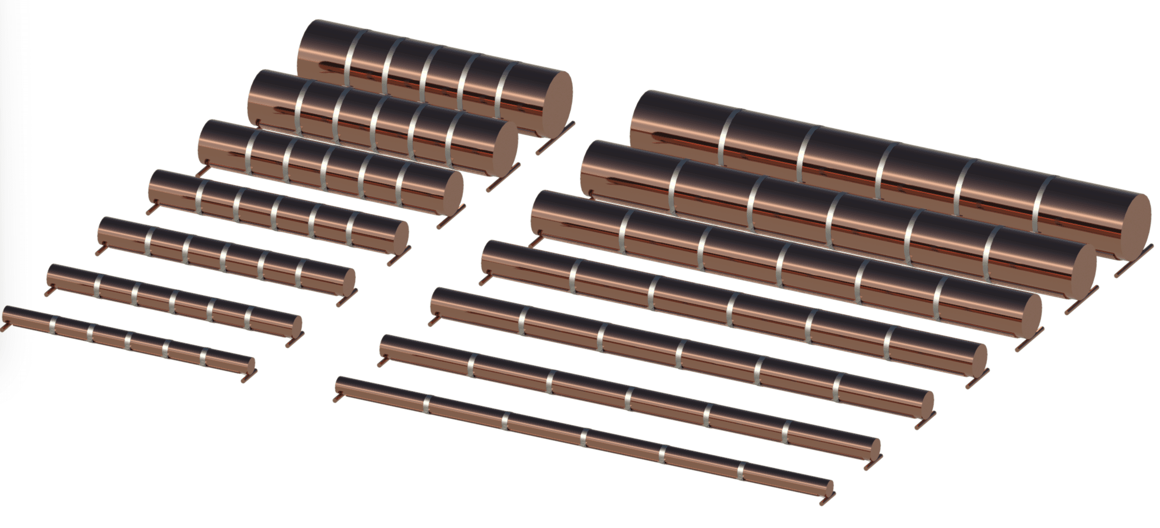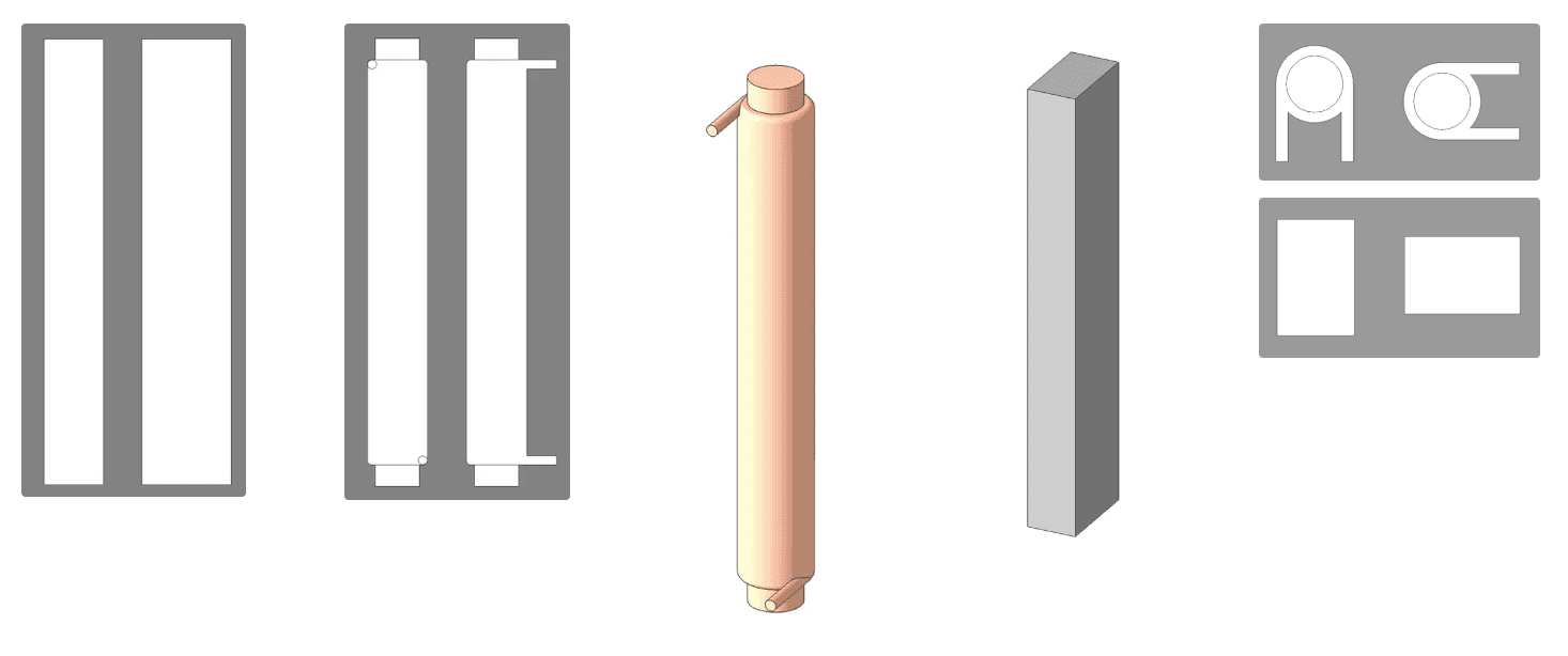 Render showing all types from the EcoDrain inline heat exchanger.