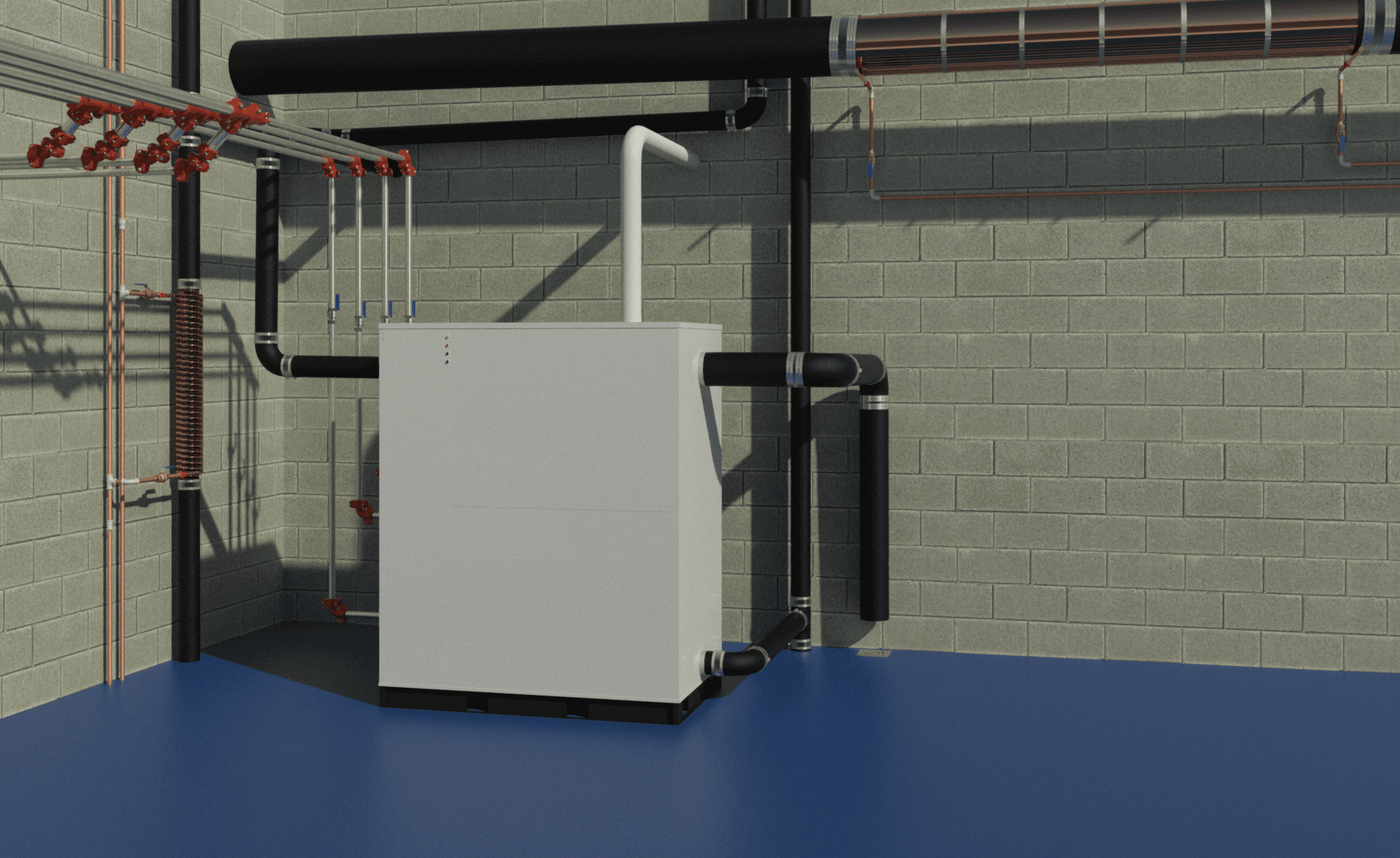 Revit mockup plantroom showing the collection in connected systems.
