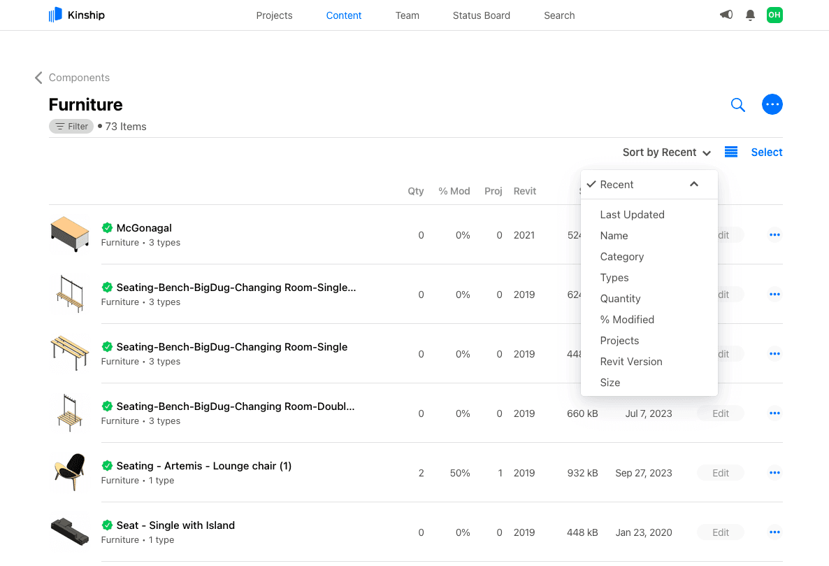You now have the option to sort content by Most Recent, which arranges items based on which content the user has most recently loaded either from the web or Revit add-in.