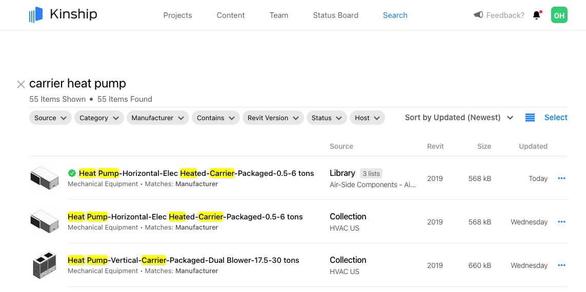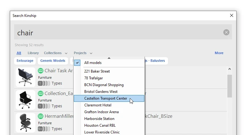 Kinship users have long been able to filter search results based on library and lists when searching in Revit.