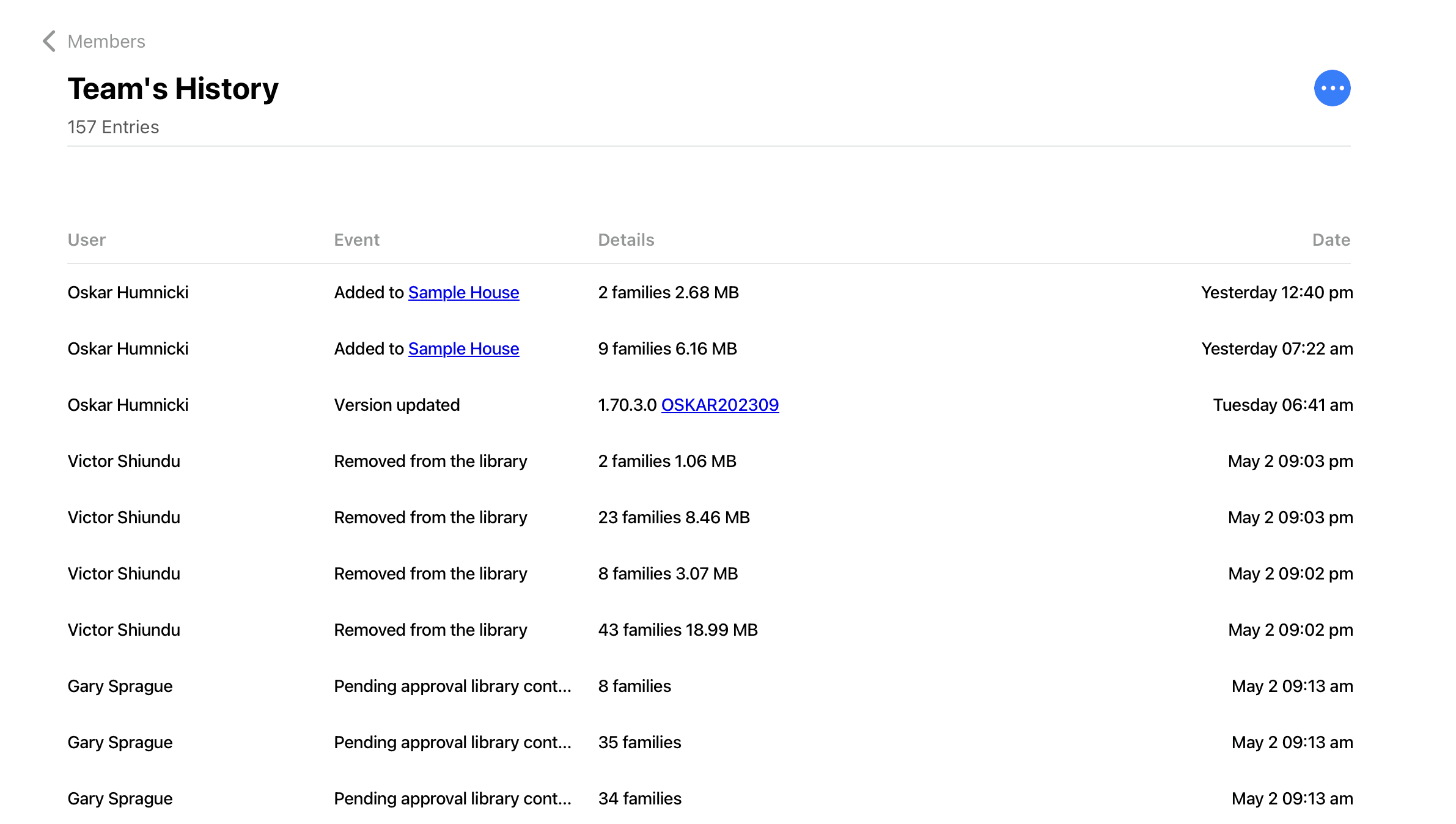 Clicking on the blue button on the right-hand side of the team page will now display “Show Team Members History”. You’ll be able to see which team members have been: