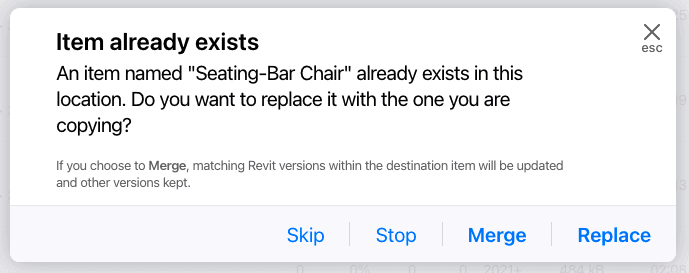 Users can now merge, replace or skip items with the same name when adding or moving content to the library or a collection.